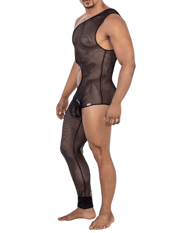 This avant-garde mesh bodysuit by CandyMan offers a daring twist on asymmetrical design, featuring sheer fabric that reveals just the right amount of skin. The one-shoulder cut, combined with a waist cut-out and a unique mix of full-leg coverage on one side, adds boldness to the look. The mesh material is breathable and stretchy, providing comfort while maintaining an edgy, provocative appearance. Ideal for those who want to make a bold and stylish statement in intimate wear.