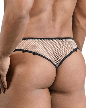 Seduction meets sophistication! The CandyMan 99860 Mesh Thong is a sultry and daring piece that combines sensuality with a touch of elegance. Featuring a soft, faux-leather front panel and delicate nude fishnet mesh with scalloped lace trim, this thong offers the perfect balance of boldness and charm.