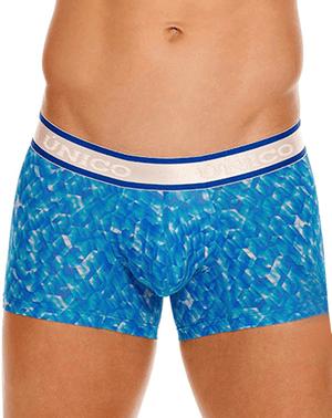 These stylish men’s boxer briefs by Unico feature a vibrant blue pattern with a mosaic-like design, perfect for adding a touch of modern flair to your everyday underwear collection. The fabric is soft and stretchy, providing a comfortable, snug fit that moves with your body. The wide waistband with 'Unico' branding offers secure support and a contemporary look. These boxer briefs are ideal for men who want to combine comfort with standout style.