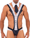 The Work-N-Play Costume Outfit includes a stylish and comfortable business-appropriate attire with a twist. The outfit features a sexy lace tuxedo with tie and lace details.